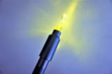 バイアルを装着したライトペンを体の部位に当て、色と光のエネルギーをパワフルに受け取ることができます。「色の鍼」「光の鍼」ともいわれています。上の写真は実際に当院で使用しているカラーライトペンを撮影したものです。